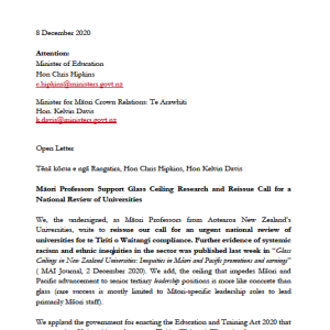 Māori professors from across all 8 of Aotearoa New Zealand’s Universities, write a second letter to the government reissuing their call for an urgent national review of the tertiary sector for Te Tiriti o Waitangi compliance.